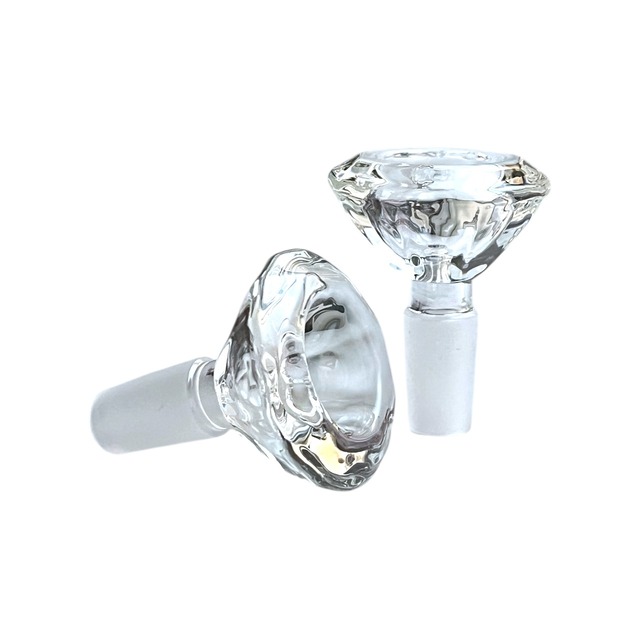 【商品説明】 ダイヤモンドカット風デザインが目を引く420friendlyセレクトのガラス製ボウル。 14mmオスジョイント対応で、ほとんどの水パイプにそのままフィット。深さのある火皿だから、ゆっくり楽しみたい時も、一気に詰めたい時もOK。クセのないクリアな吸い心地で、フレーバー本来の味をしっかり引き立てます。 「見た目」「使いやすさ」「耐久性」 全部バランス良しな、定番にして間違いない一本。 【商品詳細】 サイズ:全長 約5.5cm 火皿サイズ:幅 約5cm × 内径 約2.2cm ジョイント(接続部):14mm オス 素材:パイレックスグラス カラー:クリア 内容:ガラスボウル ×1 ※ サイズは目安です。製造工程上、若干の個体差がございます。