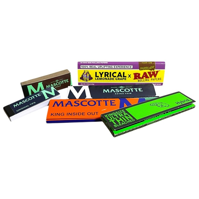 【商品説明】 ヨーロッパを中心に人気の MASCOTTE(マスコット)、アメリカNo.1ブランド RAW、話題の Hybrid Papers など、複数ブランドを一度に楽しめるローリングペーパーお試しセット。 すべて 撮影に使用したのみ、ブランドごとに巻き感・薄さ・燃焼速度が異なるため、「色々試したい」「自分の“巻きやすい1冊”を探したい方」にぜひ試してほしいラインナップ。 【商品詳細】 MASCOTTE Slim / Extra Thin / King Inside Out / Original Tips RAW × Lyrical Lemonade (King Size Wide) Hybrid Ultra Thin (King Size) • 状態:撮影サンプルとして使用 • サイズ:各ブランド King Size / Slim Wide等ミックス • 写真の品をそのままお届けします。
