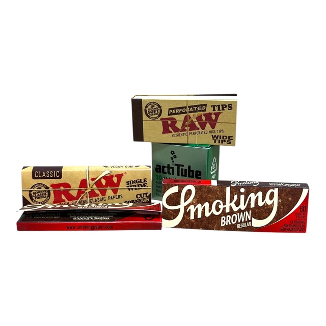 【商品説明】 人気ブランドの巻紙・フィルターをまとめて試せる、お得な撮影サンプル品セットです。 軽い使用・開封跡がありますが、未使用品を選別しているため品質には問題ありません。 RAWのクラシックペーパー、スモーキングブラウン、actiTubeフィルターなど、“まずは色々ためしたい” という方にぴったり。 【商品詳細】 RAW Classic シングルワイド RAW Perforated Wide Tips 1 1/4 Smoking Brown Regular 1 1/4 actiTube エクストラスリム:長さ 27mm / 直径 6mm 円錐形(4本入) ※ 内容は画像のセットとなります。 • 状態 ・撮影時に使用したサンプル品 ・外箱にスレ・折れなどの軽いダメージあり