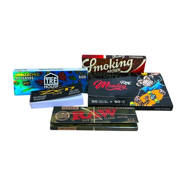 【商品説明】 人気ブランドのローリングペーパーを集めたセットです。 商品は未使用ですが、撮影時にのみ開封・使用して並べたものとなります。RAW/Smoking/OCB/TREHOUSE/G-Rollz など、デザイン性の高いペーパーが揃ったお得なセット。 【商品詳細】 RAW Classic( Limited Edition) 1 1/4 Smoking Brown Regular 1 1/4 TREHOUSE 1 1/4 G-Rollz(Cheech & Chong )1 1/4 OCB Premium ティップ • 状態:未使用・外装に軽いスレや折れがある場合あり