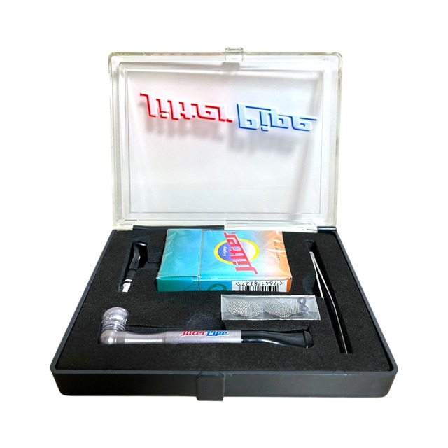 【商品説明】 すぐ使えるコンプリートセット。軽量アルミのワンヒッター。 パッケージに破損がありますが、商品本体は新品です(ケースのフタ部分にひび割れ) 【セット内容】 • Jilter Pipe 本体 • Jilter フィルターチップ • 交換用マウスピース • ピンセット(フィルターの取り外しに便利) • メッシュスクリーン • 専用BOX(※フタに割れあり) 【使い方】 ① マウスピースにフィルターを差し込む ② お好みのハーブをセットし、点火 ③ フィルターを外すときはピンセット使用をおすすめします。 【商品詳細】 全長:約 85mm 材質:アルミニウム カラー:シルバー ロゴ:JilterPipe 梱包:透明フタ付きボックス(割れあり)